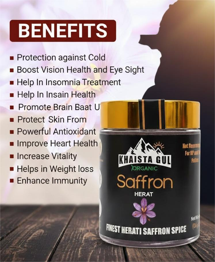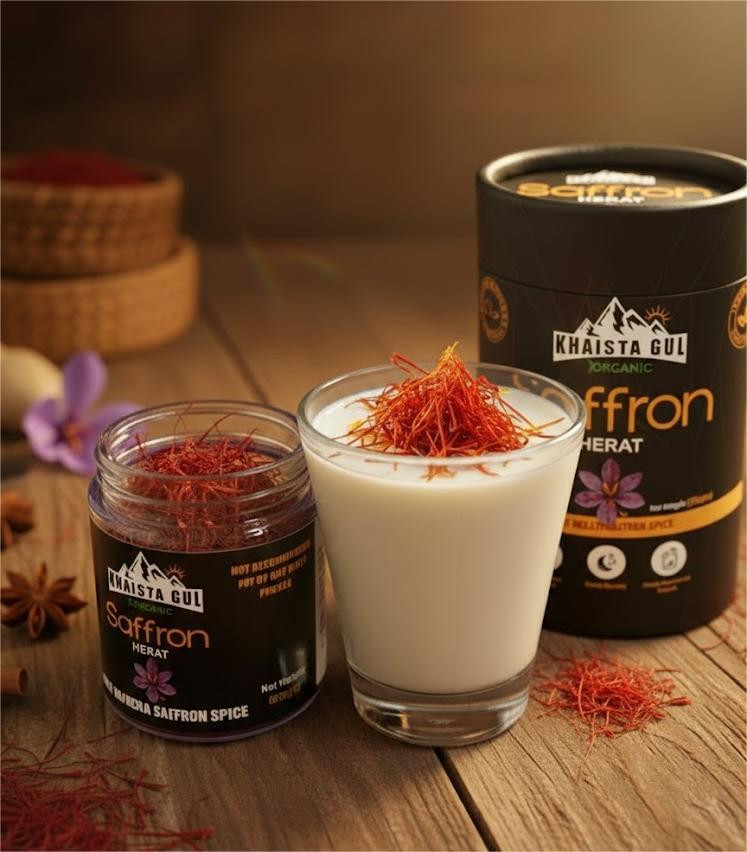 Experience the luxury, purity, and natural goodness of Khaista Gul Organic Saffron Herat — a true symbol of quality and tradition.