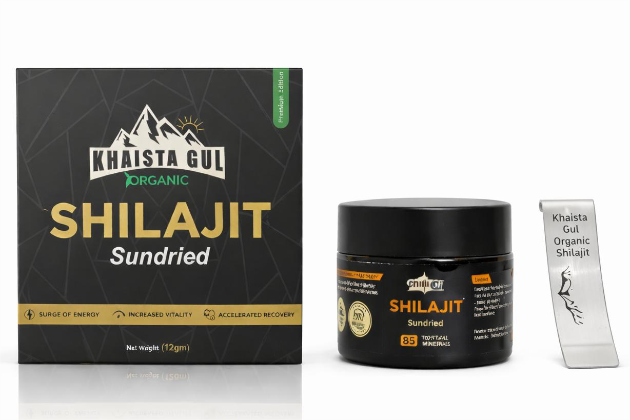 Khaista Gul Organic Shilajit-Sundried is a pure, natural dietary supplement sourced from the pristine mountains. Carefully sundried to preserve its potent minerals and bioactive compounds, this premium Shilajit supports overall wellness, boosts energy, enhances immunity, and promotes vitality. Free from additives and chemicals, it is an authentic herbal remedy for a healthier lifestyle. Ideal for daily use, Khaista Gul Organic Shilajit helps you naturally recharge your body and mind.