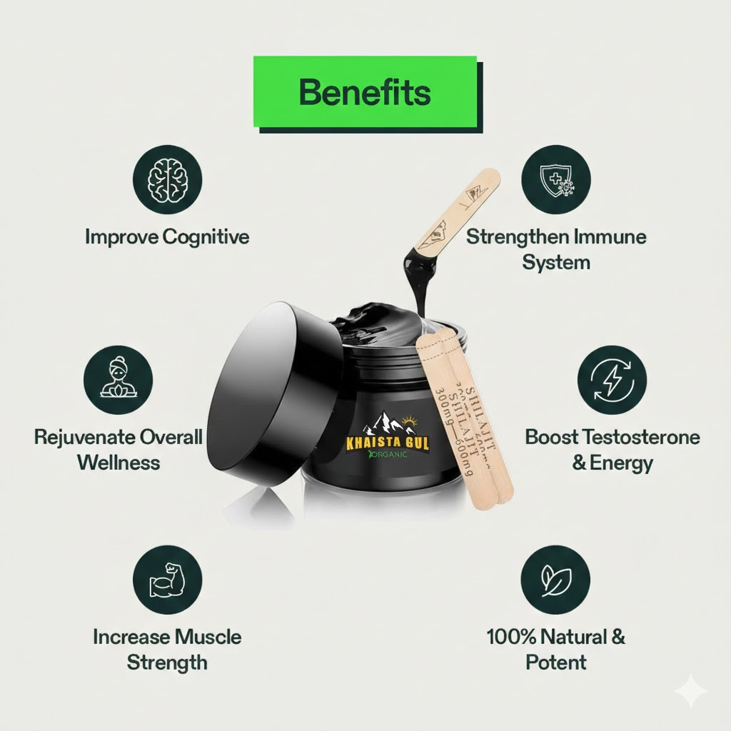 Khaista Gul Organic Shilajit-Sundried is a pure, natural dietary supplement sourced from the pristine mountains. Carefully sundried to preserve its potent minerals and bioactive compounds, this premium Shilajit supports overall wellness, boosts energy, enhances immunity, and promotes vitality. Free from additives and chemicals, it is an authentic herbal remedy for a healthier lifestyle. Ideal for daily use, Khaista Gul Organic Shilajit helps you naturally recharge your body and mind.